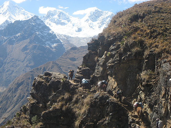 We pick you up from the hotel at 6:00 a.m. To start the trip to the town of Cachora passing through the towns of Izcuchaca to reach the Archaeological Complex of Tarawasi, we continue our trip to the bridge Cunyac, we will pass through the district of Curawasi and Saywite to finally reach Cachora (10:00 am) . There we prepare the pack animals and the muleteers and we start our walk along a gentle slope until we reach the pass of Capuliyoc (2800 masl) where we will have lunch after two hours of walking, before heading towards the town of Chiquiska (1930 masl). We will have the opportunity to observe magnificent views, beautiful landscapes, warm weather, glaciers of the Vilcabamba mountain range and the impressive abyss of the Apurímac, in this place we will have our first camp.