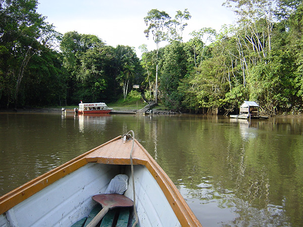 DAY 1:Reception at the airport, brief city orientation and transfer to the explornapo dock. Fifty mile journey down the Amazon River to Yanamono Stream where explornapo Lodge is located. Afternoon hike along the "Lake Trail" through lowland rainforest which is seasonally flooded. During the high water season, this excursion is done by open boat! After dinner, there is a chance to visit the Lodge's "Bar Tahuampa" where local musicians often play guitar and flute music or the guides will also be pleased to have you invite them to relate some of the many legends of the Amazon forest.