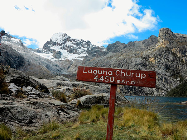 On the way we pass several beautiful villages, such as Unchus and Llupa (3450 meter over sea) we start our easy hike up to Lake Churup Churup is over 4450 m underneath snow-capped Mount Churup (5495). The last 100 meter before arriving to the lake involves some scrambling over steep rocks