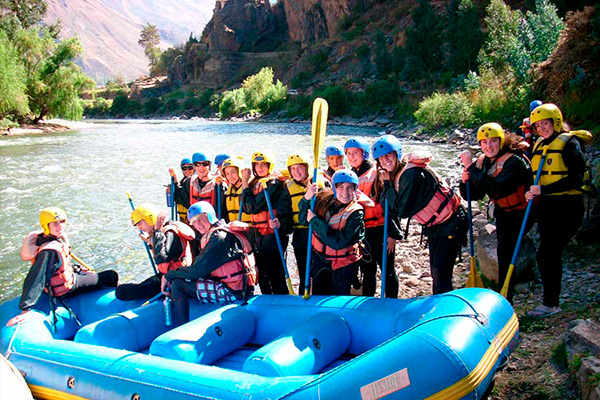 After a brief period practicing on the flat parts of the river, we will start our journey on easy waters, while we admire the spectacular mountain view and the archaeological remains. We will continue towards Ollantaytambo and its amazing Inca terraces, at the time we will experience class 2-3 rapids, to end with “El Resbaladero” (The Slide), a strong class 3 rapid that includes waves and small whirlpools.
