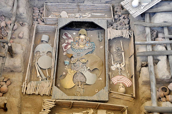 Start of the excursion to the Huaca Rajada Archaeological Complex, where the tomb of the Lord of Sipán was found. Visit to the site museum. Then we will visit the National Archaeological Museum of Bruning, which has the "Gold Room", a sample of more than 500 pieces of goldsmithing in gold. You can also appreciate the work of 50 years of research by Hans Heinrich Brüning, the founder of the museum. The Museum has several rooms where more than 1,400 archaeological pieces are exhibited, manifestations that were legacies of the cultures Lambayeque, Moche, Chavín, Vicos Inca and others. The most important pieces date back more than 10,000 years.