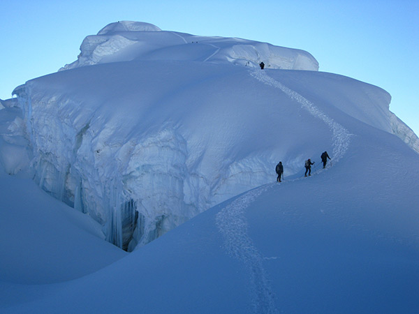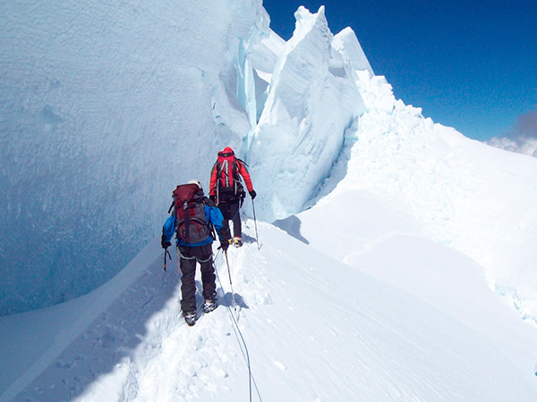 Departure at 01:00 am, after breakfast we will begin to assemble all the climbing equipment to leave for the summit of pisco 5752 m, crossing the moraine for 3 hours and entering the glacier towards the summit. Then we will return to the camp for the same route to spend the night.