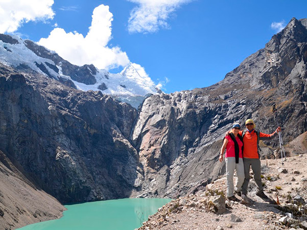 This trek leads to the foothills of the famous Alpamayo 5947m, considered the most beautiful snow-capped mountain in the world due to its almost perfect pyramid shape. We can see remains of pre-Inca agricultural terraces, the fortress of Yaino and lakes of varied colors and native flora and fauna. Among the snowy peaks that can be seen on the route are the summits of pucahirca 6046m, tulliraju 5830m, Artesonraju 6025m, quitaraju 6035m and sina cruz 6259m.