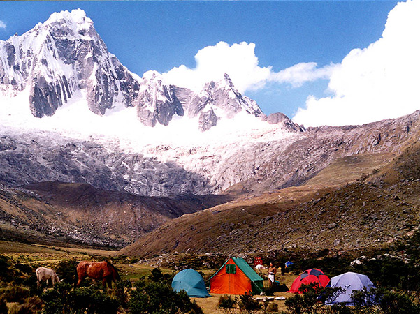 Optional: we can take a short walk to the "Mirado Alpamayo" to see the pyramidal figure of the Alpamayo mountain (5,947 m); from this place he took the famous photograph of Alpamayo "The Most Beautiful Mountain in the World". Walking time: 3 hours approx. Camping: Jancarurish (3,800 m).