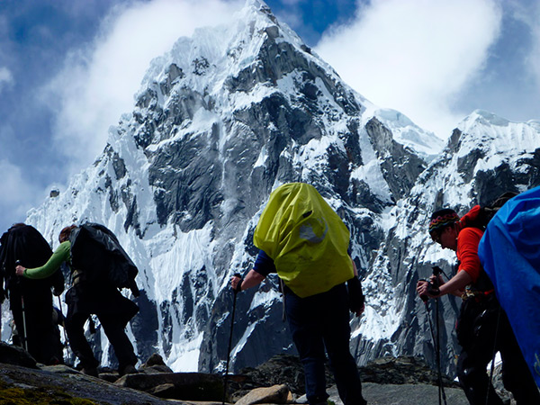 This day crosses the Punta Unión pass, 4,750 meters above sea level. height difference from the camp is 500 m. Where you can see the entire Santa Cruz Valley and the aforementioned snowfalls. After passing a 1,150 m drop is lowered. Through the Quebrada Huaripampa to the camp. In the walk it takes 07 to 08 hours approx.